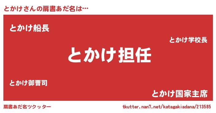 | 男性向けラノベタイトル風あだ名 | 『とかけという概念が存在しない退屈な世界 』 |