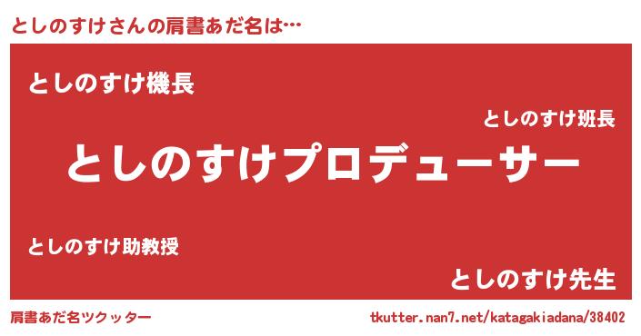 | ヘコむあだ名 | 『としのすけ(遠い目)』『としぷりん』 |