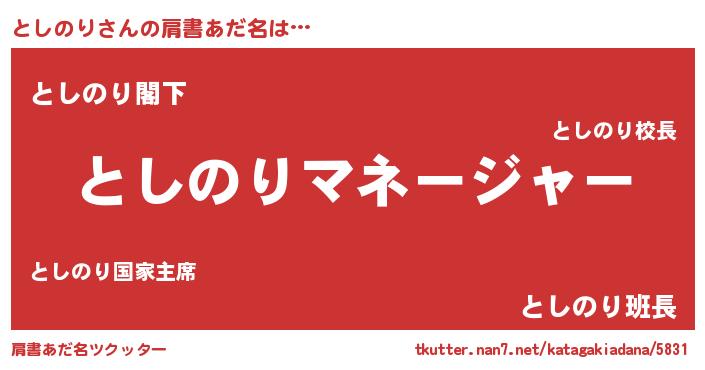 | 意味不明あだ名 | 『自称としのり』『永久保存としのり』 |
