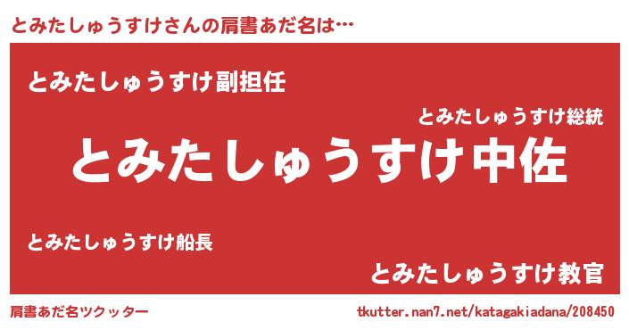 | 男性向けラノベタイトル風あだ名 | 『トミタシュウスケスレイヤー』 |
