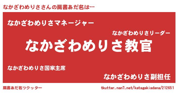 | 男性向けラノベタイトル風あだ名 | 『この素晴らしい世界になかざわめりさを!』 |