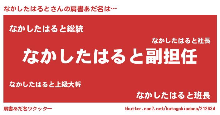 | ヘコむあだ名 | 『なかしたはると(遠い目)』『なかぷりん』 |