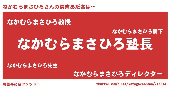| 男性向けラノベタイトル風あだ名 | 『ダンジョンになかむらまさひろを求めるのは間違っているだろうか』 |