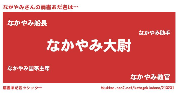 | 男性向けラノベタイトル風あだ名 | 『転生したらなかやみだった件』 |