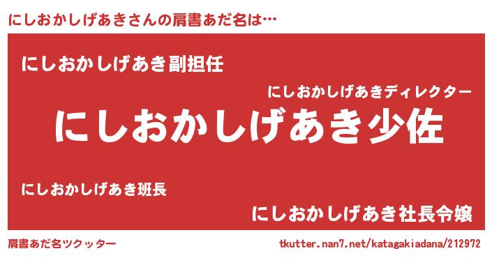| 男性向けラノベタイトル風あだ名 | 『ニシオカシゲアキスレイヤー』 |