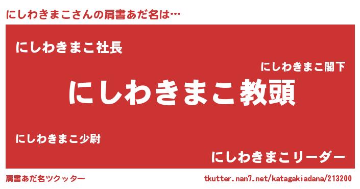 | 男性向けラノベタイトル風あだ名 | 『にしわきまこという概念が存在しない退屈な世界 』 |