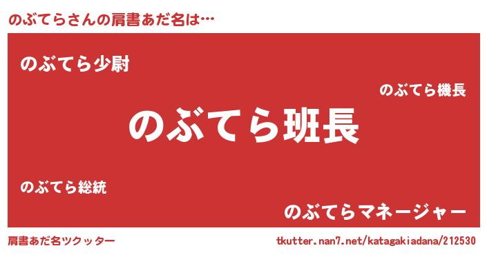 | 男性向けラノベタイトル風あだ名 | 『ダンジョンにのぶてらを求めるのは間違っているだろうか』 |
