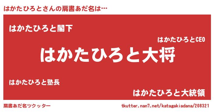 | 男性向けラノベタイトル風あだ名 | 『転生したらはかたひろとだった件』 |