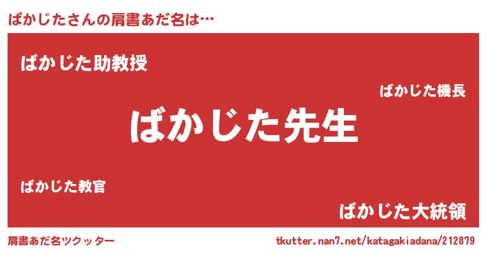 | 男性向けラノベタイトル風あだ名 | 『ばかじたという概念が存在しない退屈な世界 』 |