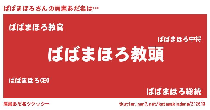 | ヒーロー風カッコイイあだ名 | 『ネオババマホロ』『仮面ババダー』 |