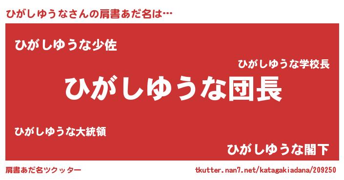 | ポケモン風あだ名 | 『ヒヒガシユウナ』『ヒガキング』 |