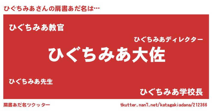 | ヘコむあだ名 | 『ひぐちみあ(笑)』『ひぐもー』 |
