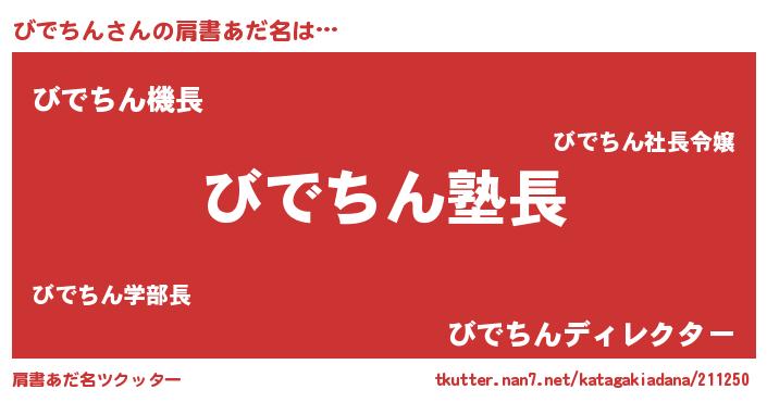 | 意味不明あだ名 | 『とにかく怪しいびでちん』 |