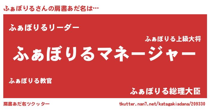 | 男性向けラノベタイトル風あだ名 | 『ふぁぼりるに滅ぼされるだけの簡単なお仕事です』 |