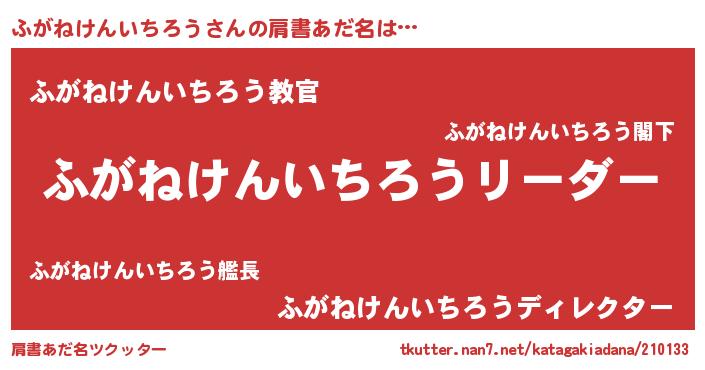 | 男性向けラノベタイトル風あだ名 | 『ダンジョンにふがねけんいちろうを求めるのは間違っているだろうか』 |