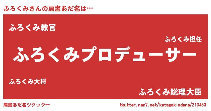 | 男性向けラノベタイトル風あだ名 | 『ふろくみに滅ぼされるだけの簡単なお仕事です』 |