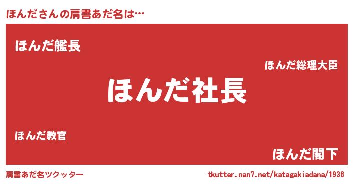 | ヒーロー風カッコイイあだ名 | 『スーパーホンダ』『サイバー戦士ホンダ』 |