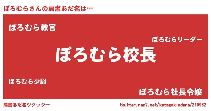 | 胡散臭い通販商品みたいなあだ名 | 『来世でも幸せになれる健康食品…その名も「ぼろむら」』 |