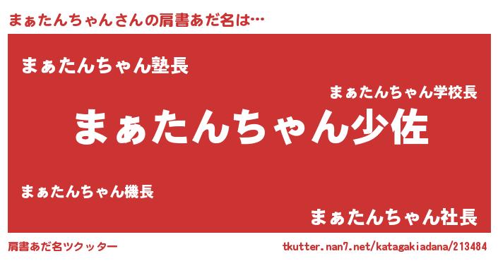| 胡散臭い通販商品みたいなあだ名 | 『信頼と実績のサプリメント…その名も「まぁたんちゃん」』 |