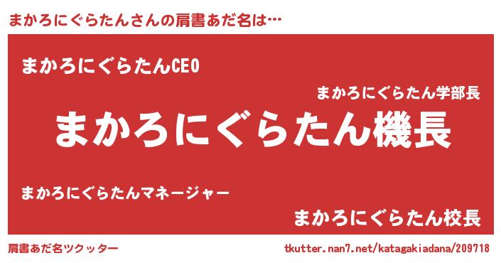 | 胡散臭い通販商品みたいなあだ名 | 『必ず成功する霊験あらたかなお札…その名も「まかろにぐらたん」』 |