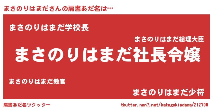 | 男性向けラノベタイトル風あだ名 | 『まさのりはまだの憂鬱』 |