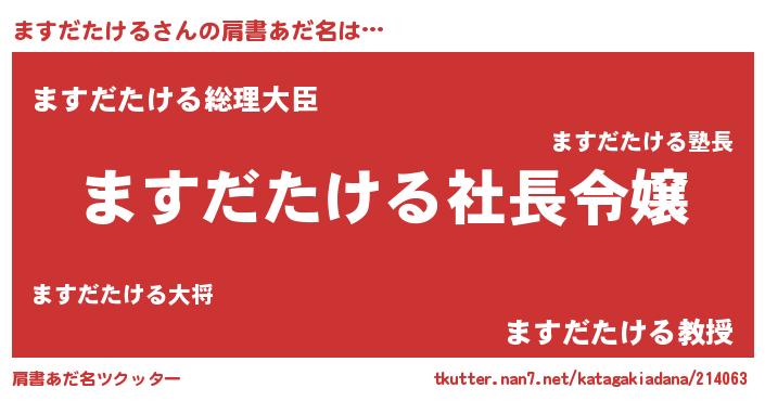 | 女子向けラノベタイトル風あだ名 | 『(仮)ますだたけるのやんごとなき事情』 |