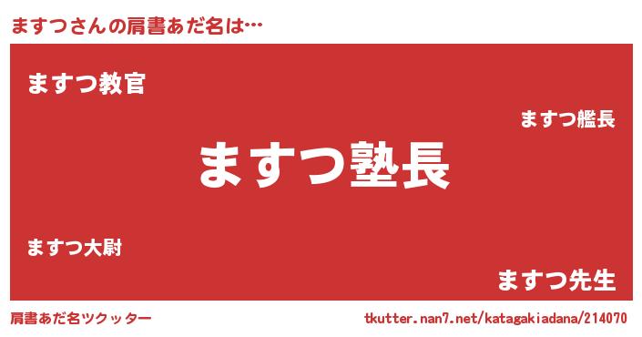 | 女子向けラノベタイトル風あだ名 | 『ますつ様がみてる』 |