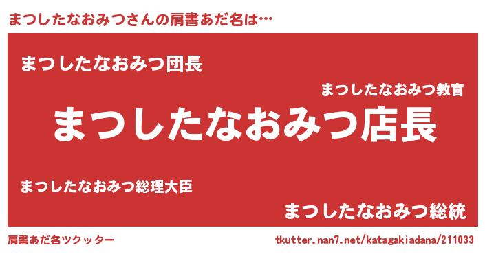 | 胡散臭い通販商品みたいなあだ名 | 『億万長者になれる水晶球…その名も「まつしたなおみつ」』 |