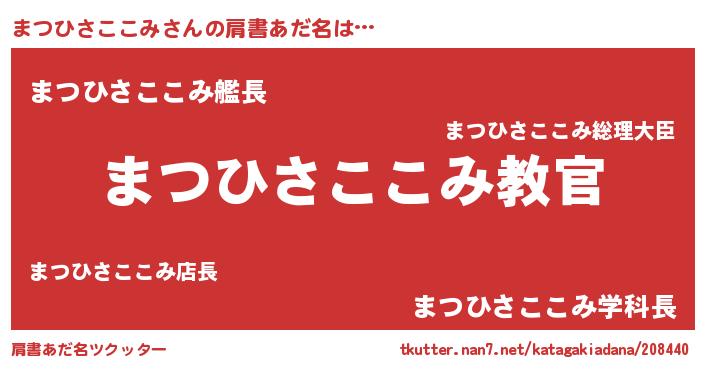 | 男性向けラノベタイトル風あだ名 | 『この素晴らしい世界にまつひさここみを!』 |