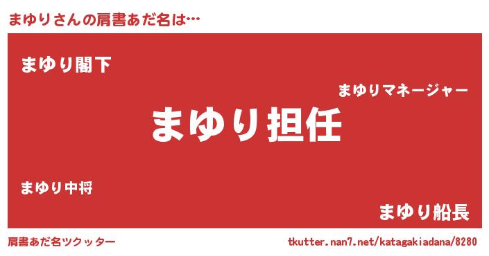 | ヘコむあだ名 | 『まゆり(苦笑)』『まゆっ子』『豆乳』 |