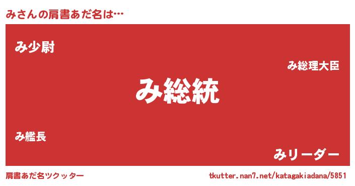 | 男性向けラノベタイトル風あだ名 | 『Re:みから始める異世界生活』 |
