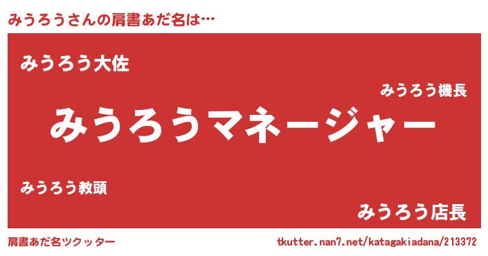 | ヒーロー風カッコイイあだ名 | 『スーパーミウロウ』『ネオミウロウ』 |