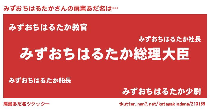 | 意味不明あだ名 | 『みずおちはるたかフォーエバー』 |