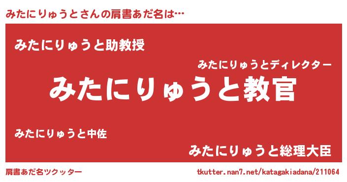 | 意味不明あだ名 | 『住所不定無職みたにりゅうと(40歳)』 |