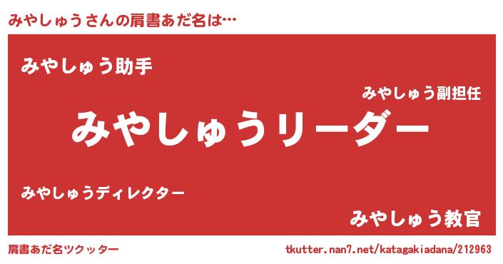 | 意味不明あだ名 | 『とにかく怪しいみやしゅう』 |