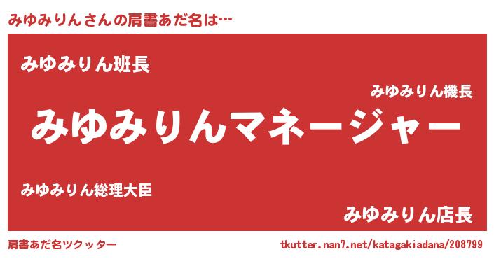 | 男性向けラノベタイトル風あだ名 | 『はたらくみゆみりんさま!』 |