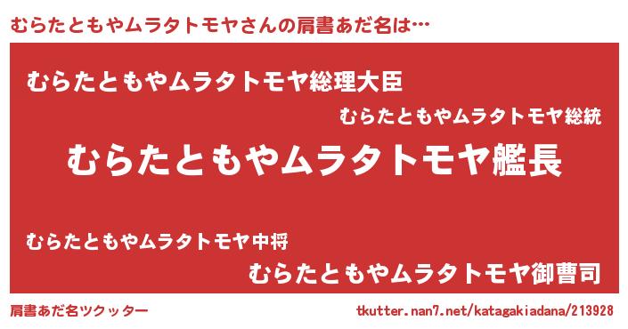 | 女子向けラノベタイトル風あだ名 | 『シンデレラむらたともやムラタトモヤ家の靴箱館』 |