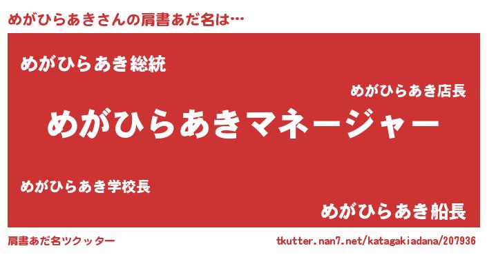 | 意味不明あだ名 | 『自称めがひらあき』 |