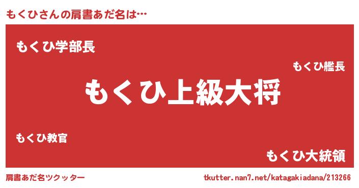 | 男性向けラノベタイトル風あだ名 | 『モクヒスレイヤー』『緋弾のモクヒ』 |