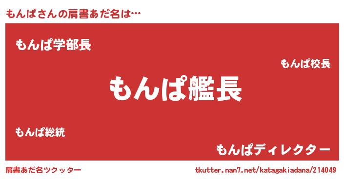 | ヘコむあだ名 | 『もんぱ(笑)』『もんぷりん』『豆乳』 |