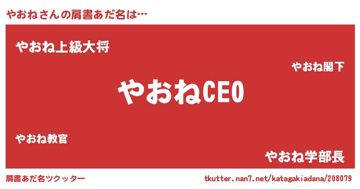 | ヒーロー風カッコイイあだ名 | 『スーパーヤオネ』『慈愛の使者やおね』 |