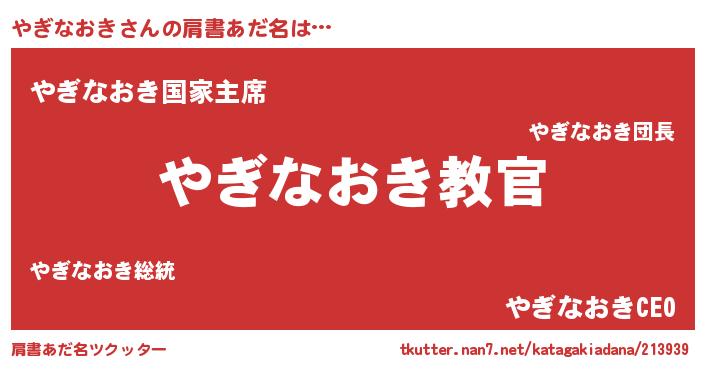 | 意味不明あだ名 | 『住所不定無職やぎなおき(98歳)』 |