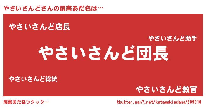 | 意味不明あだ名 | 『とにかく怪しいやさいさんど』 |