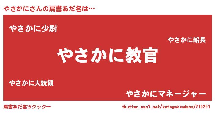 | ヒーロー風カッコイイあだ名 | 『仮面ヤサダー』『ウルトラやさかにマン』 |