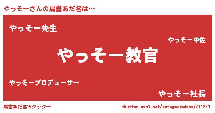 | ヘコむあだ名 | 『やっそー(震え声)』『やっにー』 |