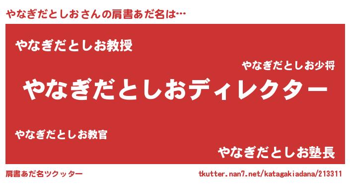 | 男性向けラノベタイトル風あだ名 | 『やなぎだとしおに滅ぼされるだけの簡単なお仕事です』 |