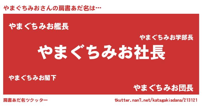 | 女子向けラノベタイトル風あだ名 | 『(仮)やまぐちみおのやんごとなき事情』 |