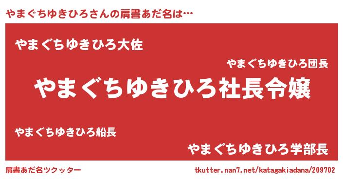 | 男性向けラノベタイトル風あだ名 | 『やまぐちゆきひろの憂鬱』 |