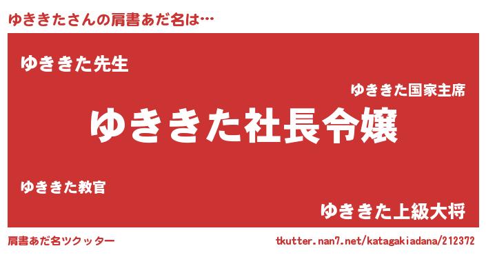 | 女子向けラノベタイトル風あだ名 | 『(仮)ゆききたのやんごとなき事情』 |