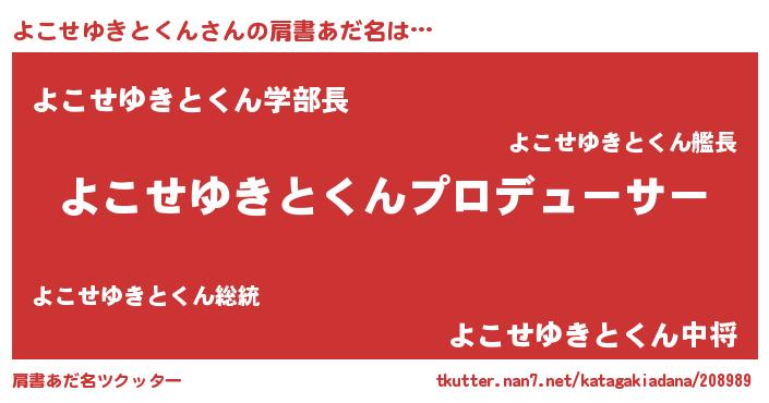 | ヘコむあだ名 | 『よこせゆきとくん(震え声)』『よこっぺ』 |